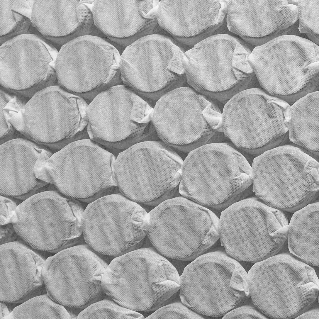 Featuring commercial grade pocketed coils, the zoned nested innerspring offers 20% more support than traditional pocketed coil innersprings. The central third is designed in a honeycomb pattern to improve durability, support, and pressure relief.