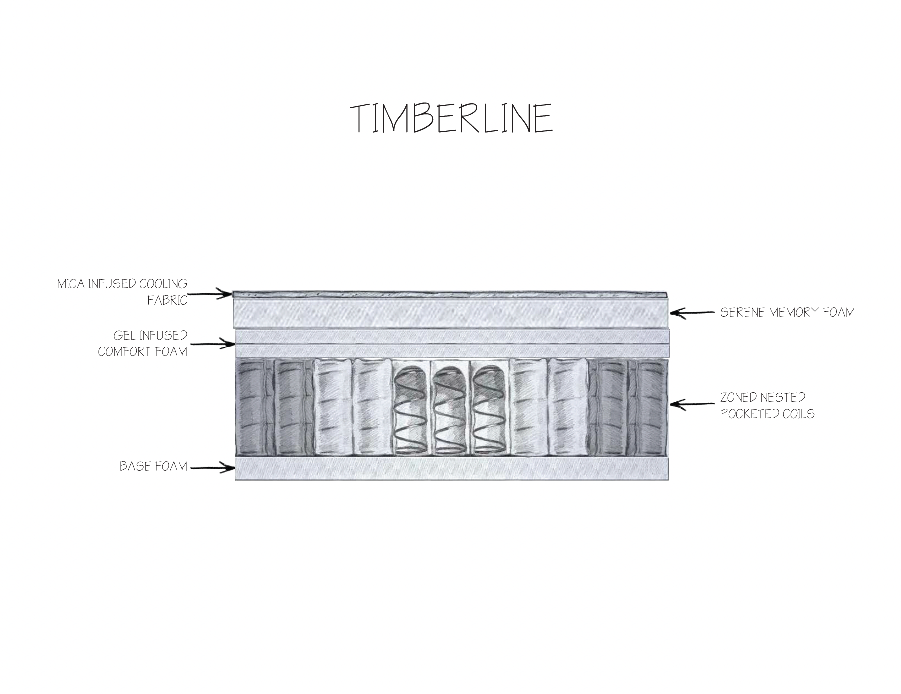 Timberline represents the true equilibrium of the Onyx Hybrid Collection. Offering a medium comfort feel, it blends the gentle pressure relief of plush foams with the strength and stability of precision-engineered coils. The result is a versatile sleep experience that adapts beautifully to a wide range of sleepers seeking both comfort and support in perfect harmony.